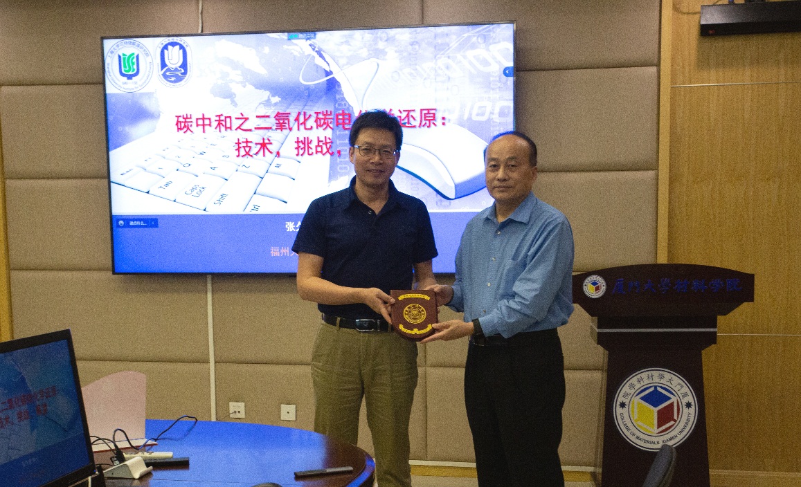 5月20日下午,福州大学材料科学与工程学院院长张久俊院士应邀做客“南强学术讲座”,在新楼308报告厅为师生带来一场题为“碳中和之二氧化碳电化学还原:技术、挑战、展望”的精彩报告。学院院长解荣军教授主持了本场讲座,并为张久俊院士颁发了南强学术讲座纪念牌。