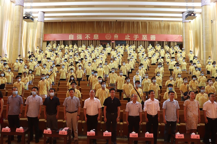 老生代表、2018级博士生范仲雄与新生们分享了他的“厦大感受”——知所从来,思所从往。生逢盛世,定当不负盛世,他希望同学们大力学习和弘扬共产党人在各个历史时期的宝贵精神和财富,以“功成不必在我”的历史境界和“功成必定有我”的历史担当,将自身发展积极融入到民族复兴的科技发展大潮中,为我国经济社会发展奉献厦大力量。2021级本科新生代表周宁隽发言时表示,希望与各位材料学子共勉,做一个心中有梦,眼里有光的青年,在风华正茂的年纪以青春之笔、奋斗之墨书写青春新篇章。